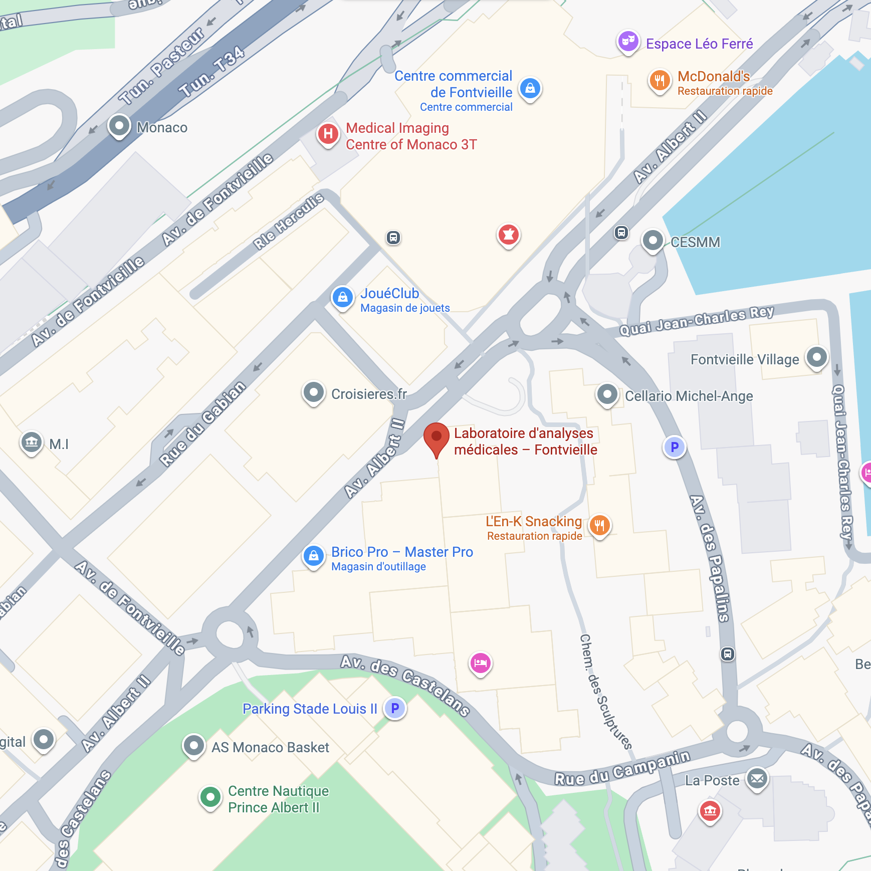 Le laboratoire de Fontvieille se situe Zone F, Rez-de-chaussée, 4/6 avenue Albert II, quartier de Fontvieille.