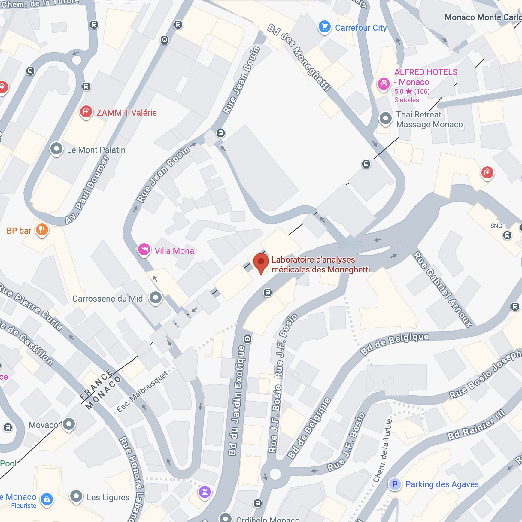 Le laboratoire de Monte-Carlo se situe 21, boulevard Princesse Charlotte, quartier de Monte Carlo.